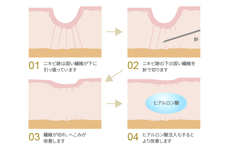 サブシジョンは、凹凸のあるニキビ跡や傷あとを改善するための施術です。