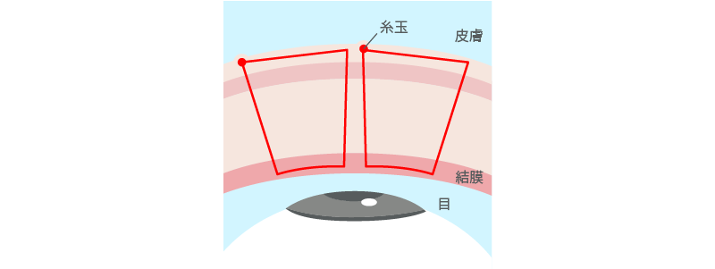 目尻の皮膚を数ミリ切開して目の横幅を広げる施術です。