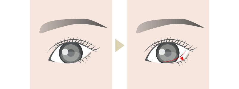 グラマラスライン(タレ目形成)によって下まぶたのラインを下げることで、縦幅が広がり目が大きく見える効果が期待できます。